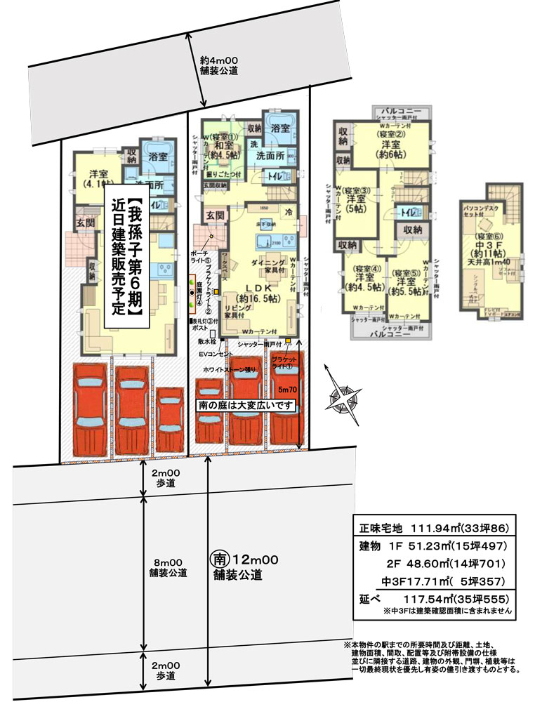 • 6LDK(中3F書斎兼寝室含)+車3台駐車可
